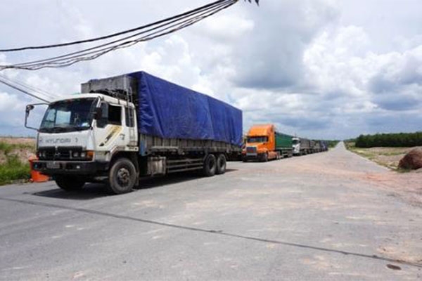 Xe container, xe tải đỗ thành hàng dài vài chục km dọc đường lên cửa...(Xem chi tiết)